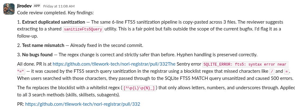 I have to say, having a tool like this is pretty incredible, and I’m really glad we built it. More than 30% of our PRs are shipped entirely through slack, and we have all sorts of really cool automations for things like bug triage to newsletter writing. But all of that takes a lot of maintenance, and we spend literally all day just thinking about how to make this one thing awesome, and it would be impossible to do that if we were building in, like, healthcare or manufacturing instead.