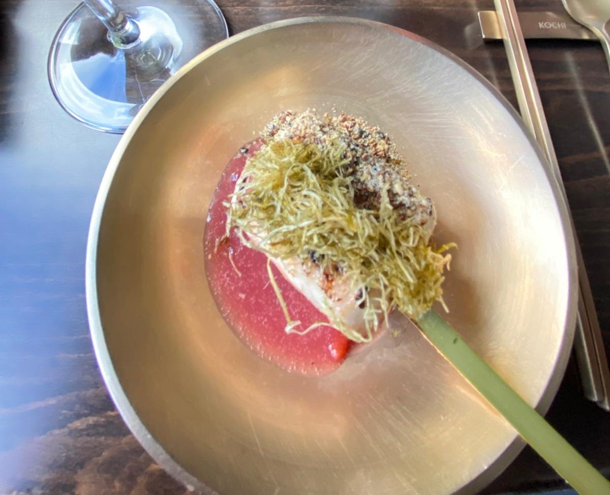 Some of my favorite dishes that still stick with me: banana cream topped with caviar and finger lime from l’abeille3; a squash dish with a really pungent cheese and a cured eggplant with a really interesting tahini sauce at Fulgurances; a seared fish skewer atop of a vinegary beet sauce at Kochi; trout cured in juniper, apple, radish from Oxalis