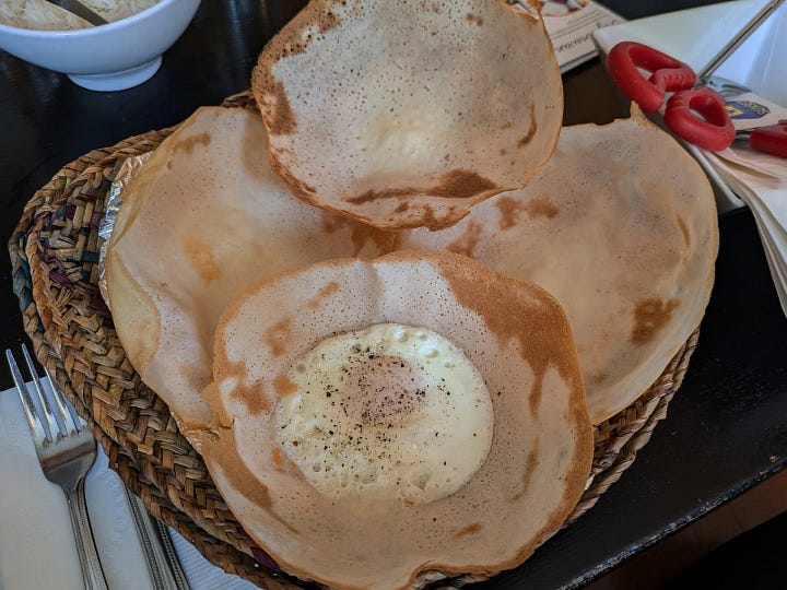 For the last dish, we ordered appaâhoppersâto go with the prawn curry. This combination was excellent: the hoppers were crispy, but soft enough to soak up plenty of curry. The curry had a slightly sweet after taste â a rich curry with all the right notes: cardamom, cumin, fennel but with something sweet that tasted almost like little crystals of caramel. Iâm fully expecting this dish to be a favorite go-to this winter season. Really just no notes.