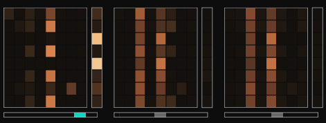 Here, there is high attention weight for slot 7 and slot 1 on the input, and nowhere else. This will essentially result in the input V vector being 'written' to slot 7 and slot 1.