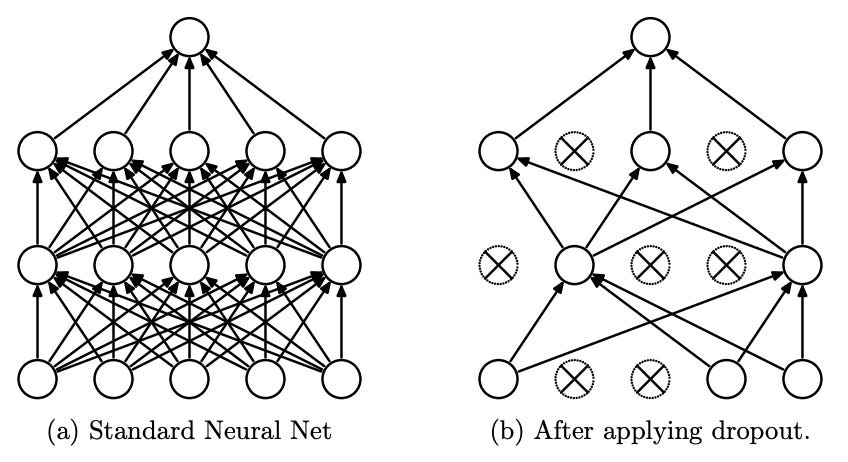 If I have a model with 100 neurons, at each step I could 'turn off' 50 of them randomly. We call this 'dropout'. In some sense, this is like having a smaller model. It forces the model to learn independent relationships. A model without dropout can learn N^2 relationships. A model with dropout learns significantly less. Empirically, dropout works really well!