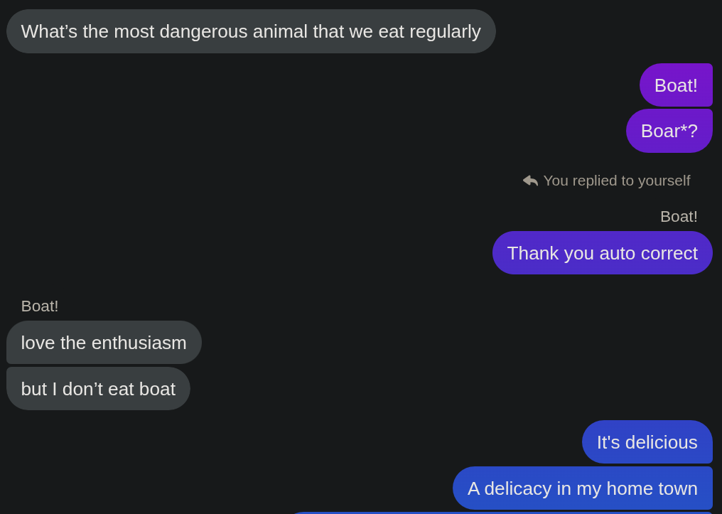 In college, my freshman year floor had a little motto: “always double down.” It’s a bit like the improv ‘yes and’. No matter what was happening, no matter how ridiculous the conversation was, you always double down. So normal chit chat would rapidly spiral into insanity that everyone would play with a straight face, which would often form the basis of recurring bits.