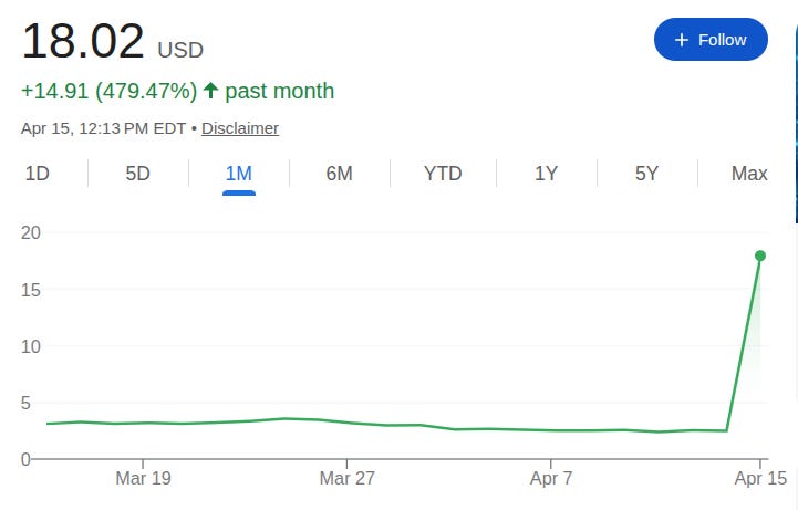 As of writing, actually, its closer to 500%.