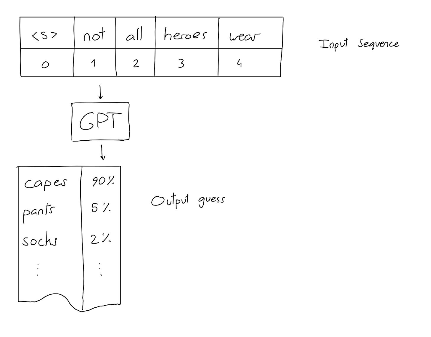 Roughly, you have this blob of matrix multiplications that all start out with random values. You also have a bunch of real-world sentences that you pull from a bunch of different sources. You convert each token in the sentence to a number, so that the sentences become lists of numbers. And then you hide some values and ask the system to predict what values were hidden.