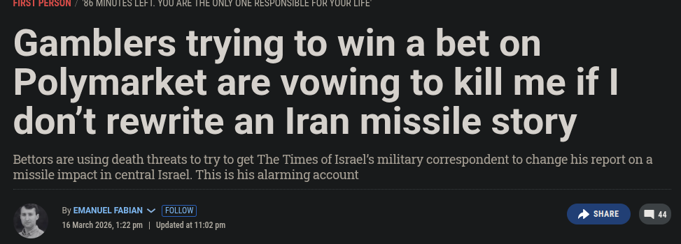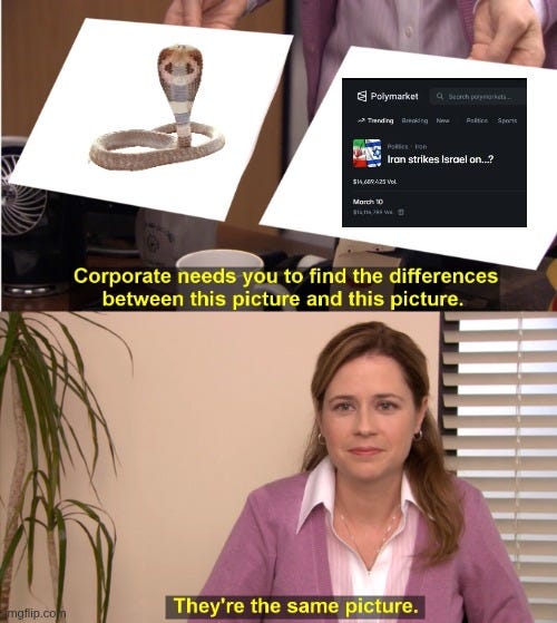 The event that these people had bet on was “Iran strikes Israel on…?” More than 14 million dollars had been wagered on March 10.
