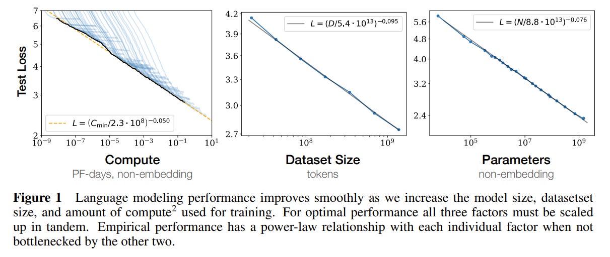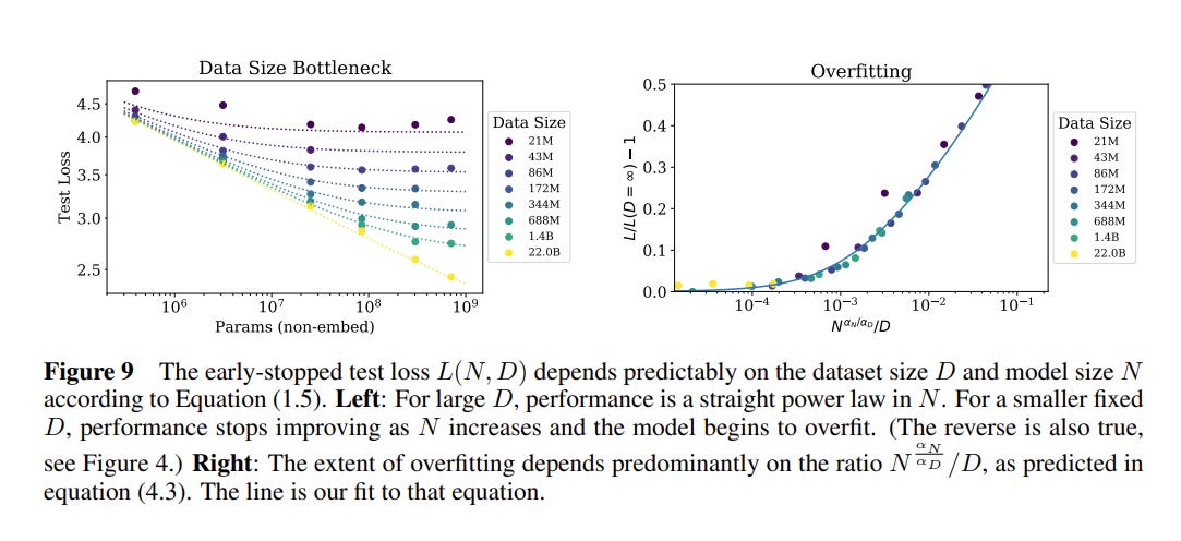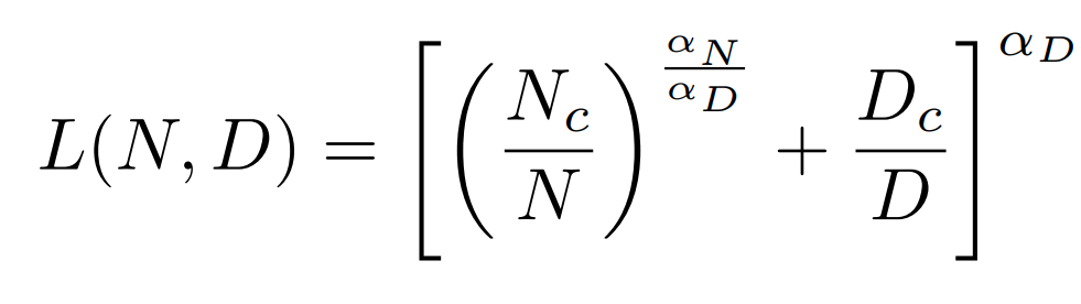 They know that if you fix the total amount of data and make the model infinitely large, the loss should approach the data scaling law above. And by the same token, they know that if you fix the model size and make the amount of data infinitely large, the loss should approach the model scaling law above. (In other words, your loss is capped by where you are most resource constrained).