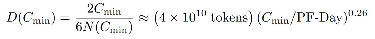 If you rewrite the equation for compute efficient training with the optimal critical batch size and assume you never do more than one epoch of training, you get: