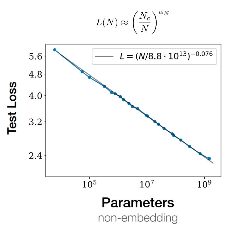 The authors use all of this data to derive their first scaling law: the relationship between loss and parameter count.