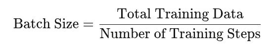 First, some basics. As we saw above, if you assume that your model size is constant, your test loss is based on the number of data points that you train on. So, in order to understand how long you should train a model, you need to tie together the number of training steps with the number of data points. You do that with batch size, which naively is just:
