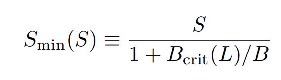Where Smin is the smallest number of steps to achieve target loss L at batch size Bcrit, given observed number of steps S at batch size B.
