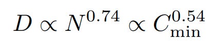 You can think of this as “the step where a model of size N has used exactly C compute.” From here, the authors train a bunch of models of different sizes i.e. at a bunch of values of N. They calculate the loss of each model at each step. They calculate the amount of compute each model has used at that step.4 And then they simply find the model with the lowest loss for each value of compute. That gives us the third scaling law:
